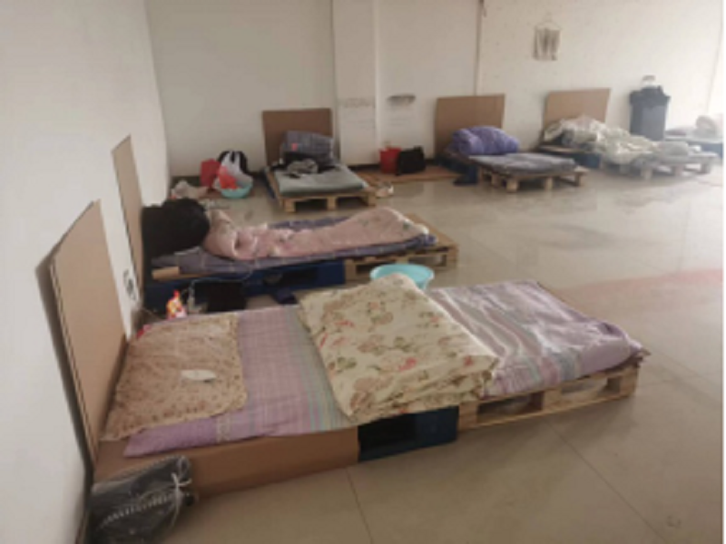 為滿足員工基本生活需求,公司將培訓室、辦公室、會議室臨時改成員工休息室、開放公司淋浴房、搭建晾衣繩(桿)。