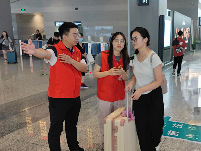 端午節(jié)將近,火車站內(nèi)來往乘客絡(luò)繹不絕,黨員同志們堅(jiān)守著各自的崗位為乘客們提供志愿者服務(wù):面對不知路線的乘客,他們親切地詢問并指引;遇到尋找購票窗口的乘客,他們熱情地為其引導(dǎo);看見行李繁多的乘客,他們主動(dòng)地上前分擔(dān)……